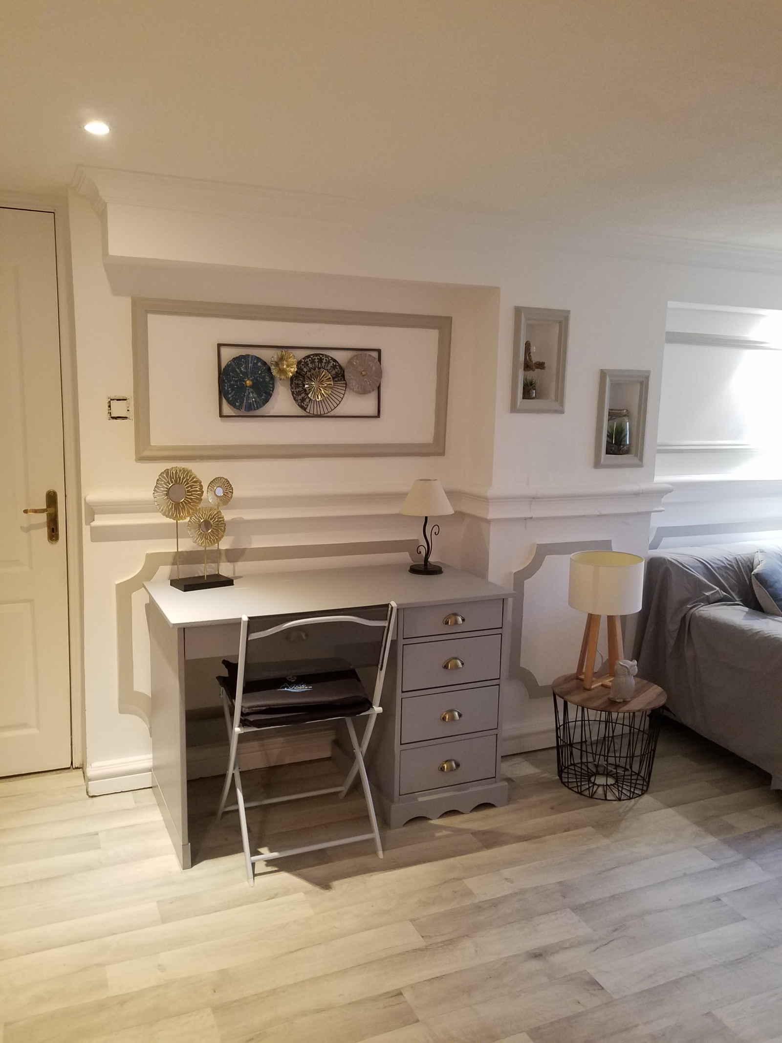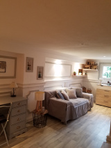 À l’étage, vous découvrirez deux chambres, une salle de bain équipée d’une douche à l’italienne et d’un WC, ainsi qu’une mezzanine pouvant faire office de bureau ou d’espace lecture.