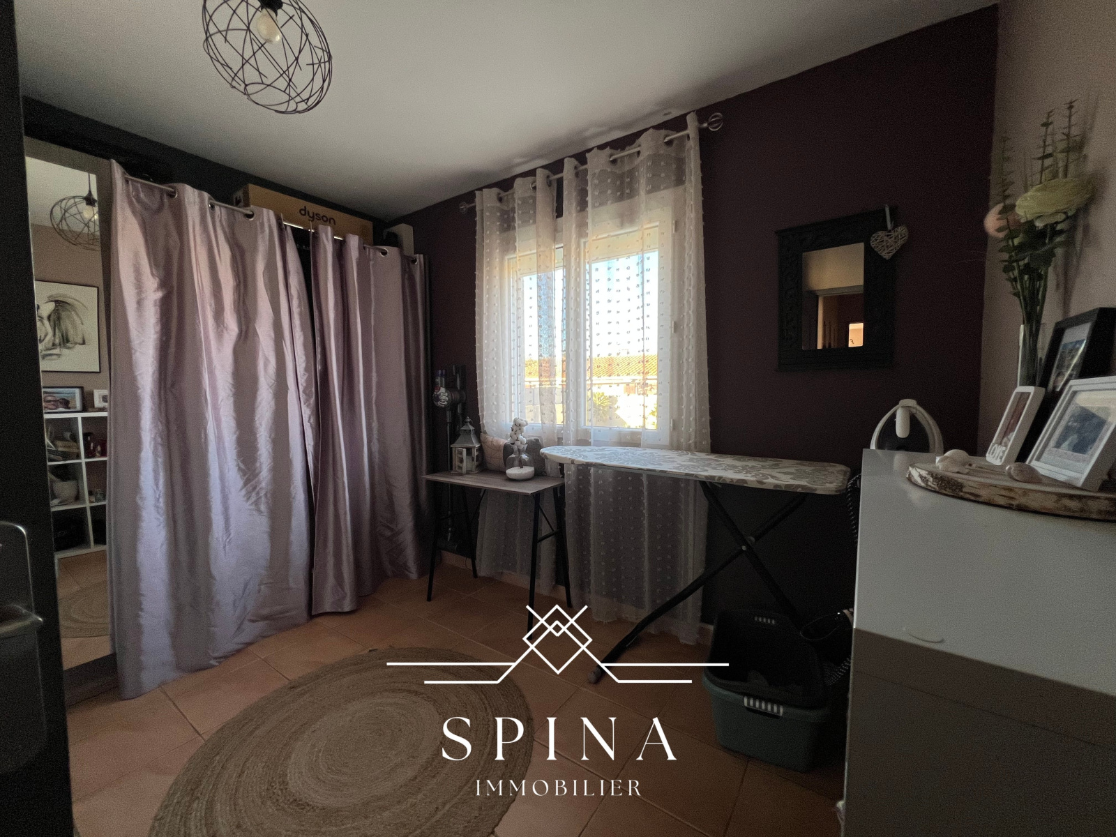 À l’intérieur, cette villa de plain-pied propose une grande pièce de vie lumineuse, avec séjour et cuisine ouverte entièrement équipée d’électroménager de qualité. Une buanderie attenante ainsi qu’un grand placard complètent cet espace.
