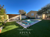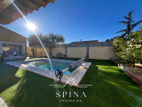 À l’arrière de la villa, profitez d’un espace extérieur exceptionnel, une piscine entourée de gazon, un coin salle à manger, ainsi qu’une cuisine d’été avec barbecue, idéale pour recevoir. Un espace pétanque complète ce lieu de vie convivial.