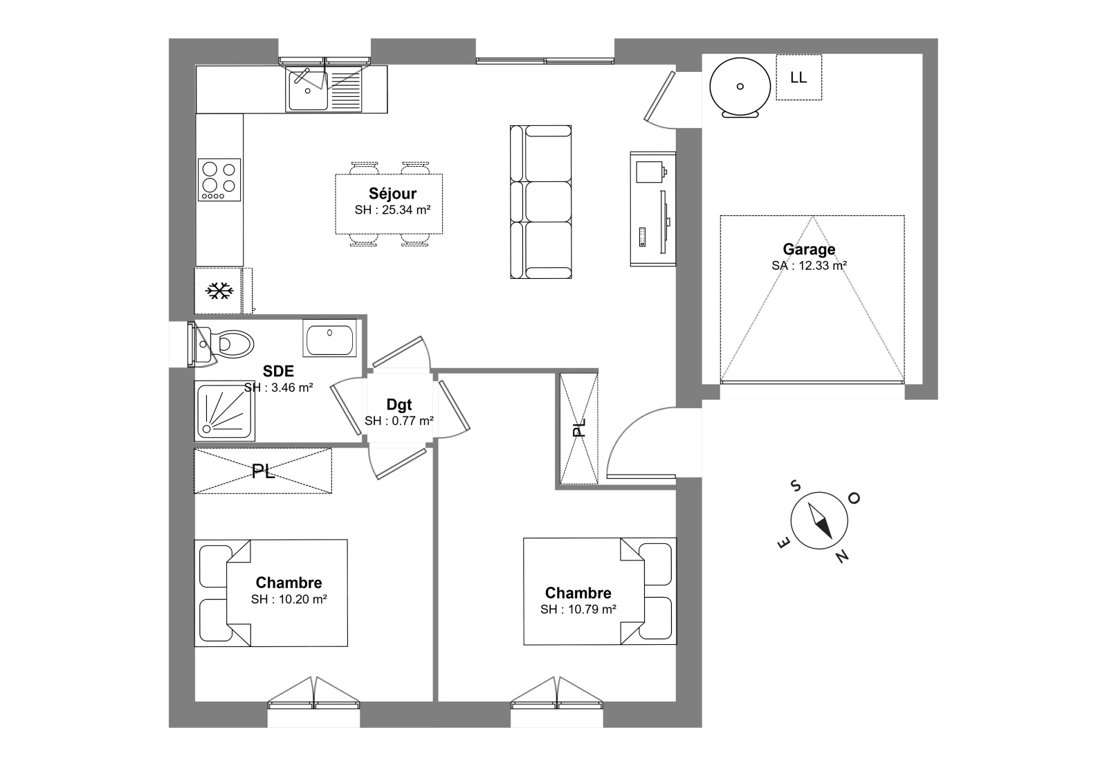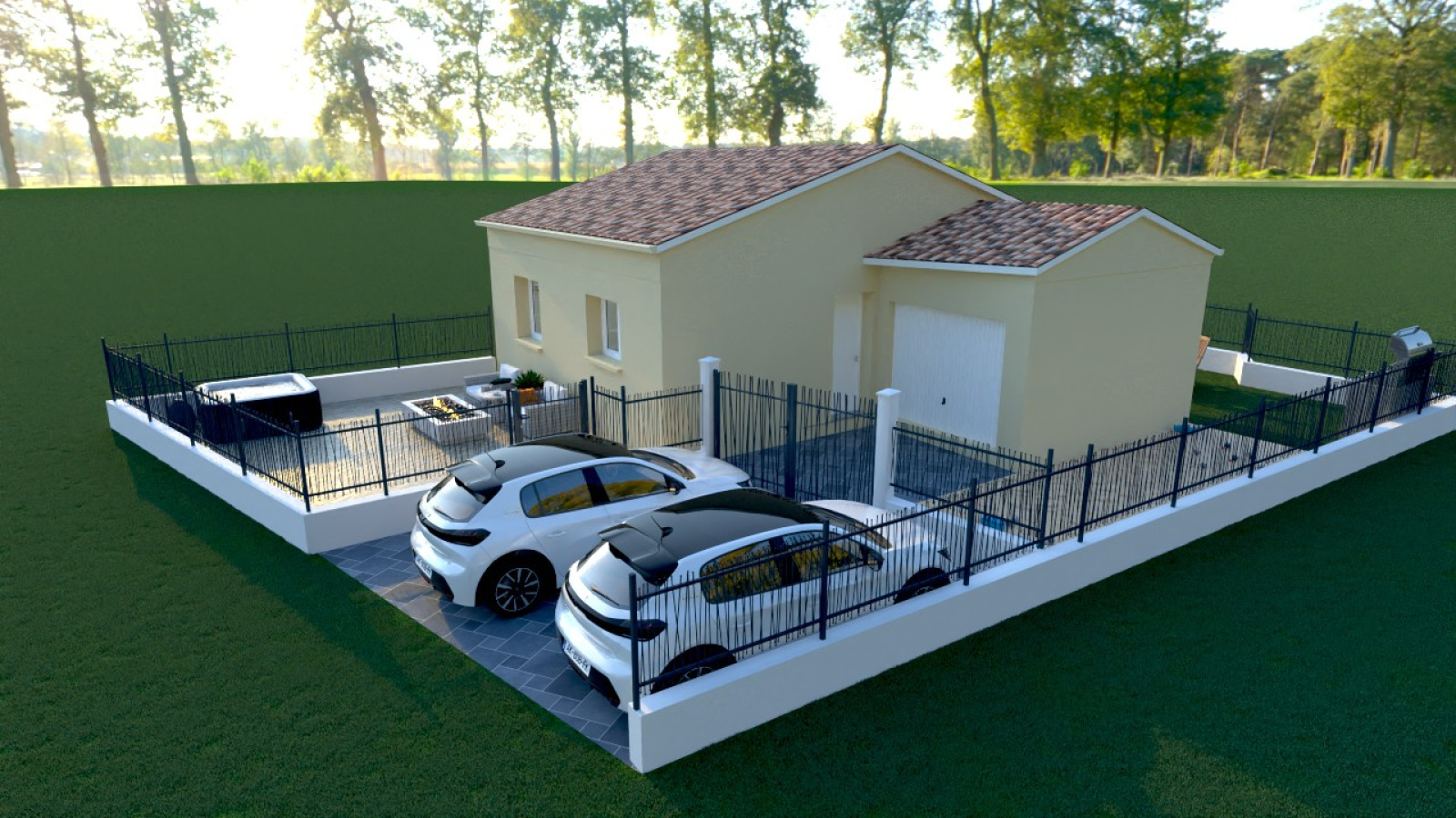 - Maison de plain-pied de Type 3 d'une superficie habitable de 50m2 avec garage de 12m2 pour un prix TTC à 210 000€ hors peinture et cuisine (viabilisation incluse).