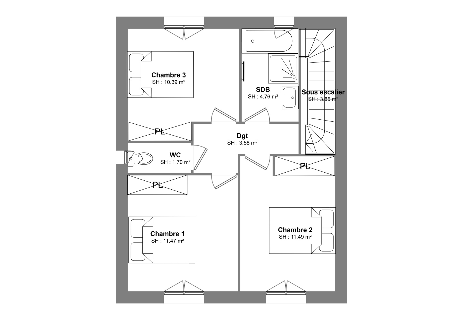 - Maison en R+1 de type 4 d'une superficie habitable de 95m2 avec garage de 23m2 pour un prix TTC à 280 000€ hors peinture et cuisine (viabilisation incluse).